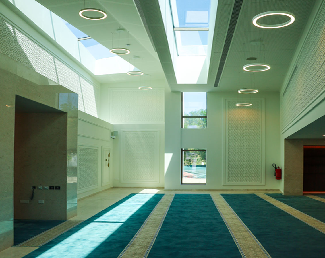 A serene and elegantly designed mosque nestled within the Amity School campus, offering a peaceful sanctuary for worship, reflection, and spiritual growth. Harmoniously integrated into the academic environment, its thoughtful architecture and refined detailing complement the school’s modern design while serving the spiritual needs of students, faculty, and the wider community. The mosque stands as a symbol of unity, faith, and cultural harmony within a space dedicated to learning and enlightenment.